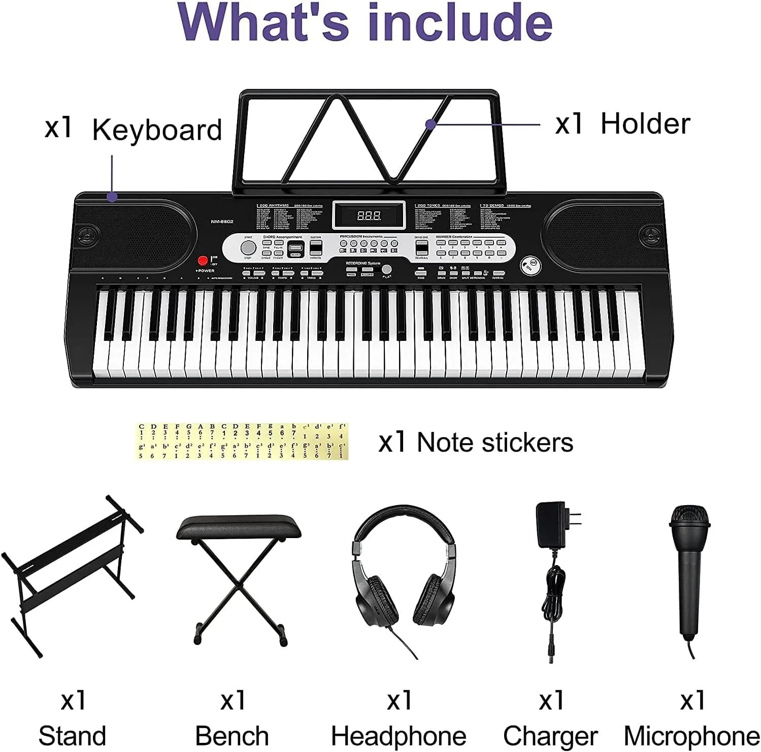 1 pcs 61-Key Children'S Portable Electronic Keyboard Portable Bst-8602 with Microphone Musical Education Toys Instrument Gift